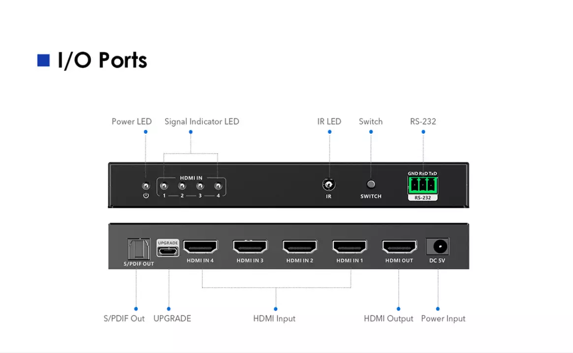 Lenkeng LKV841 — переключатель (свитчер) видеосигнала размерностью 4×1 с разрешением до 7680×4320.